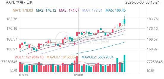在WWDC大会召开前,苹果周一股价最高涨超2%并上逼185美元,创下盘中历史新高,发布会80分钟时头显设备迟迟没露面,涨幅曾砍半至不足1%,头显发布后股价转跌,无缘收盘最高。