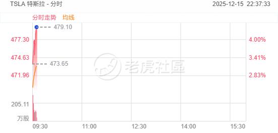 12月15日,特斯拉盘初涨幅扩大至逾4%,股价创年内新高!此前该公司在奥斯汀启动Robotaxi无人驾驶测试。