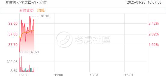 1月28日,小米集团-W股价盘中再创新高,一度触达38.1港元,总市值超9500亿港元。