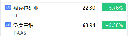 美股异动 | 贵金属概念股上扬,泛美白银、赫克拉矿业涨超5%