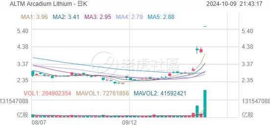 本周三(10月9日),锂生产商 Arcadium Lithium 涨超30%,上周至今股价已接近翻倍: