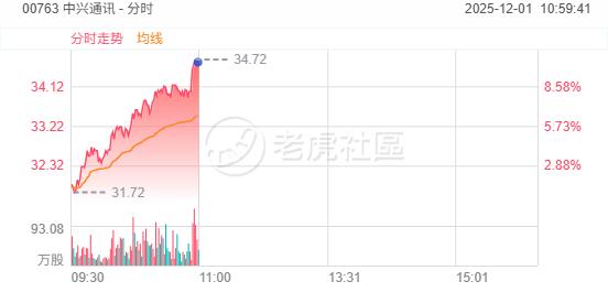 12月1日,中兴通讯A股持续走强封板涨停,H股短线拉升涨超10%!公司发文表示,搭载豆包手机助手技术预览版的工程样机努比亚M153目前少量发售。