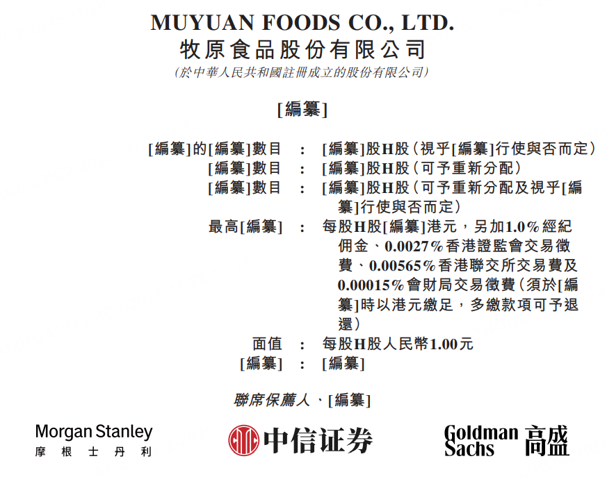 11月28日,据港交所文件显示,牧原食品股份有限公司向港交所提交上市申请书,联席保荐人为摩根士丹利、高盛、中信证券。