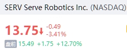10月9日(周四),Serve Robotics盘前拉升涨超12%,公司将与DoorDash与合作,将送货机器人引进平台