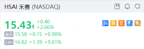 11月24日,禾赛-WH股盘中涨超10%,美股夜盘涨超9%。