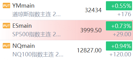3月23日,美股指期货上涨,道指期货涨0.55%,纳指期货涨0.94%,标普500指数期货涨0.73%。