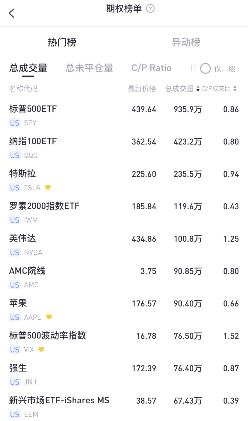 标普指数ETF-SPY期权成交935.9万张合约,其中,看跌期权占比53%。