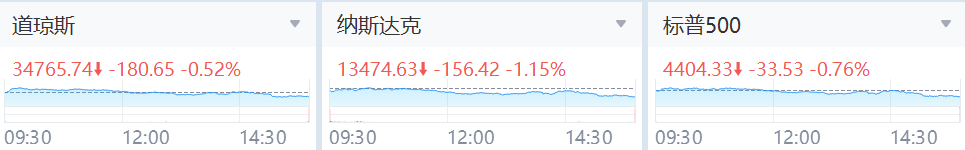 美东时间8月16日,美股全线下挫,美联储公布会议纪要,暗示可能进一步加息。截至收盘,道指跌180.65点,跌幅0.52%,报34765.74点,纳指跌1.15%,报13474.63点,标普500指数跌0.76%,报4404.33点。