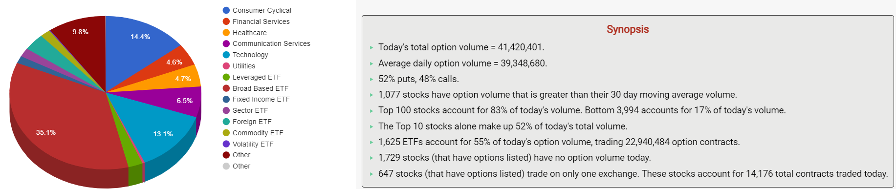隔夜,期权市场总成交量达41,420,401张合约,其中,看涨期权占比48%。
