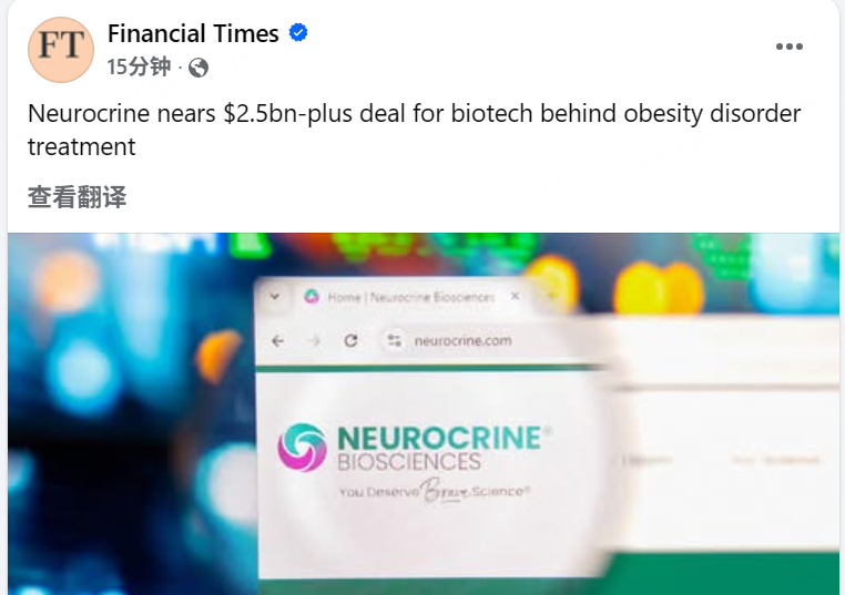 据 Financial Times 报道,制药公司 神经分泌生物科学 正接近达成一项超过25亿美元的收购交易,目标为 Soleno Therapeutics 。