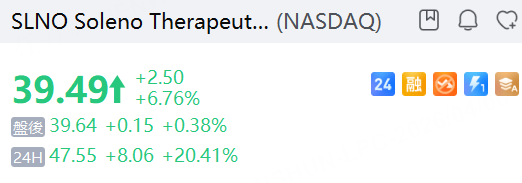 受消息影响, 神经分泌生物科学 夜盘跌3%, Soleno Therapeutics 夜盘飙20%。