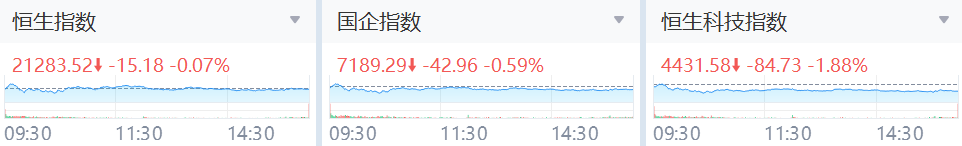 盘面上,科网股全天疲弱,美团、快手跌超6%,百度跌超3%,阿里巴巴、京东跌超1%。