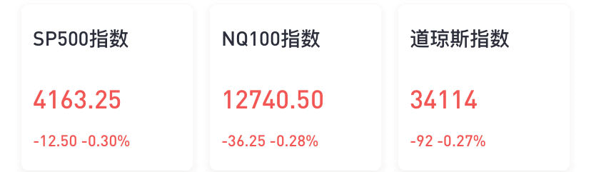美股三大股指期货下跌,截至发稿,道指期货跌0.27%,纳斯达克100指数期货跌0.28%,标普500指数期货跌0.30%。欧股