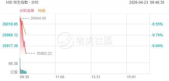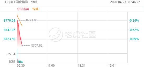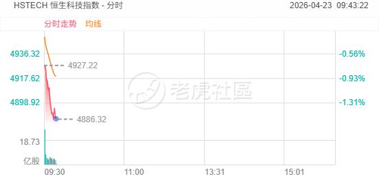 4月23日周四,港股三大指数盘初快速下挫,恒生科技指数跌超1.5%,恒生指数、国企指数均跌超0.9%。