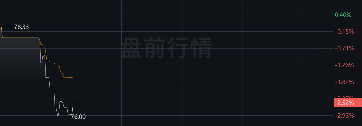 盘前快速走低,跌幅约3%。