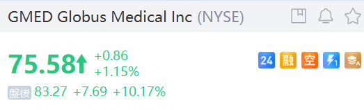 肌肉骨骼解决方案公司 Globus Medical Inc (NYSE:GMED)的股价在报告第三季度盈利超出分析师预期并上调全年指引后跃升7.4%。