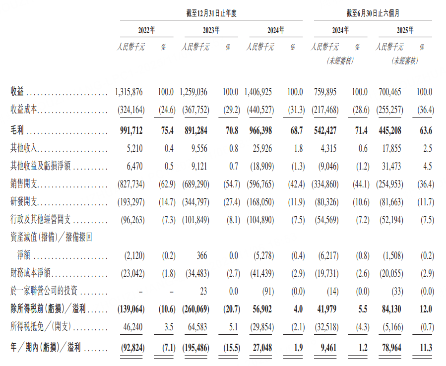 于2022年、2023年、2024年及截至2025年6月30日止六个月,该公司分别产生收益 人民币13.16亿元、人民币12.59亿元、人民币14.07亿元及人民币7亿元。于往绩记录期,该公司的收益主要与医药产品有关。