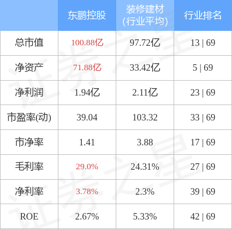 该股主要指标及行业内排名如下: