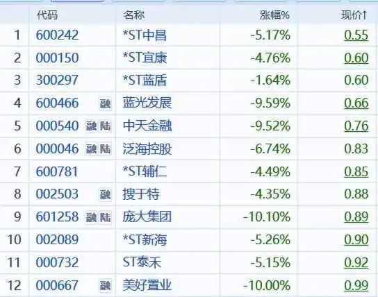 截至4月24日收盘,A股股价低于1元面值的总共有12只股票,其中以房地产为主业或房地产为重要业务的公司,多达5只。他们分别是,蓝光发展、中天金融、泛海控股、ST泰禾、美好置业。