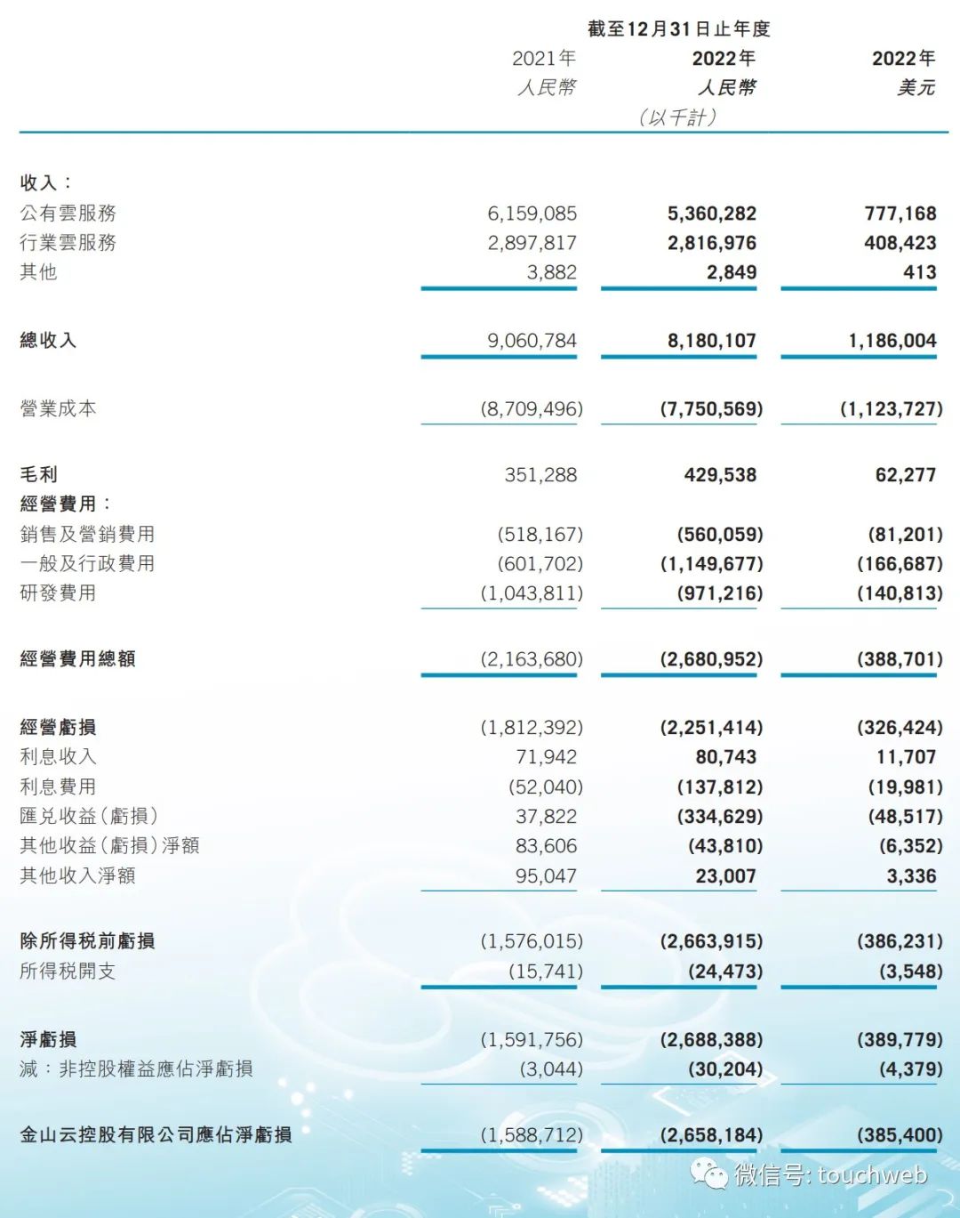 金山云2022年净亏损为26.88亿元,上年同期的净亏损为15.92亿元。