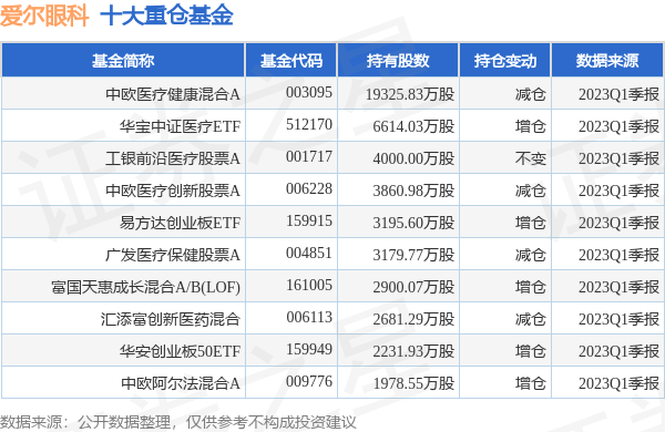 重仓爱尔眼科的前十大基金见下表: