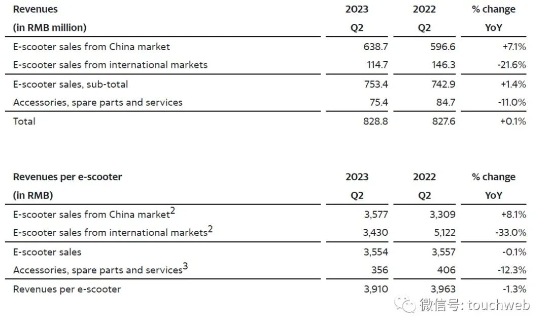小牛电动2023年第二季度营收为8.288亿元,较上年同期的8.27亿元增长0.1%。