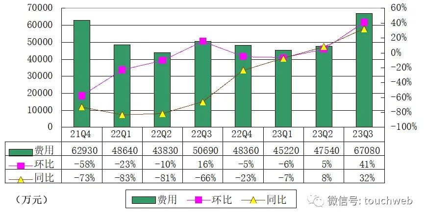 高途2023年第三季费用为6.708亿元,较去年同期的5.069亿元增加32.3%,主要是由于人工费用的上升以及市场推广活动支出的增加。