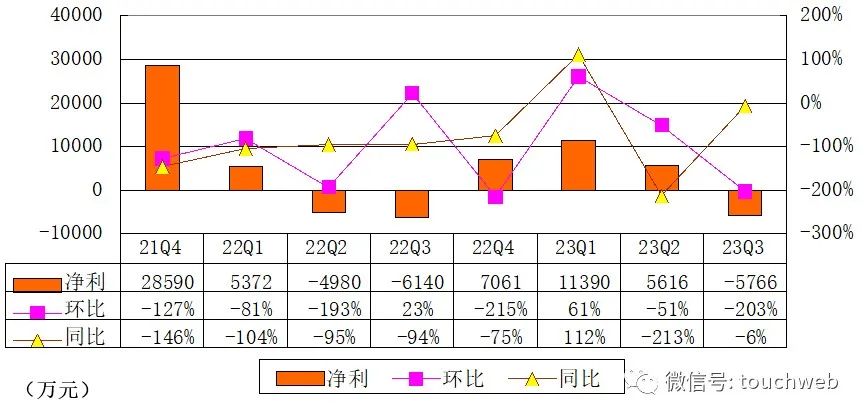 高途2023年第三季度营业亏损为9954万元,净亏损为5766万元。