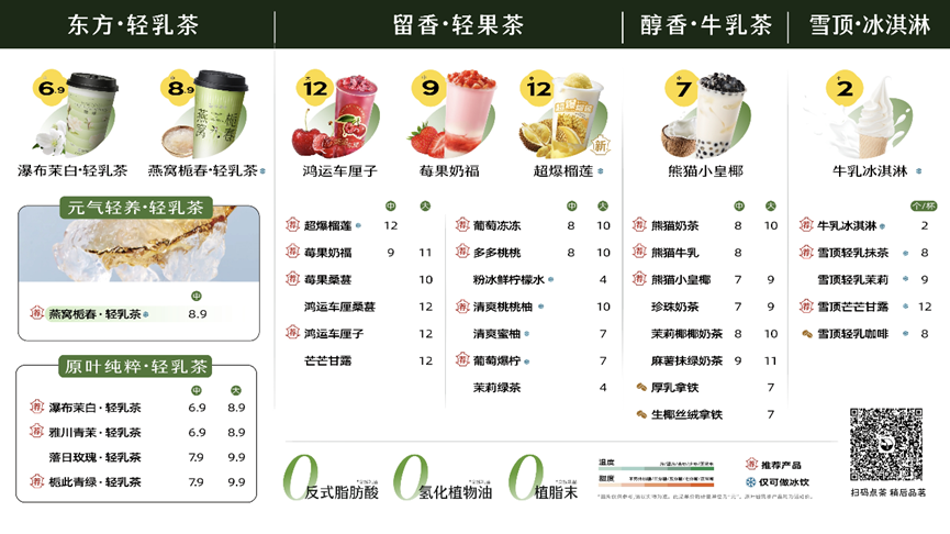 其中,“轻享版”便是今年3月6号新推出的茶瀑布,定位为三线及以下城市的消费者提供更具性价比的选择,主打“平价”“轻乳茶,主要产品价格介于2~12元,客户群体定位学生等年轻群体,聚焦下沉市场,打法类似蜜雪冰城。
