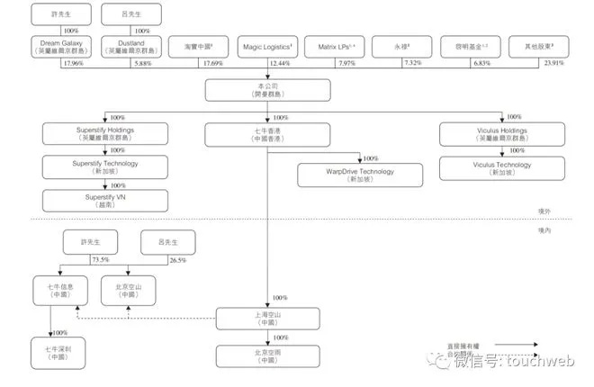 IPO前,七牛云创始人许式伟持股17.96%,联合创始人、总裁GuihuaLyu持股为5.88%,阿里通过Taobao China持股为17.69%。