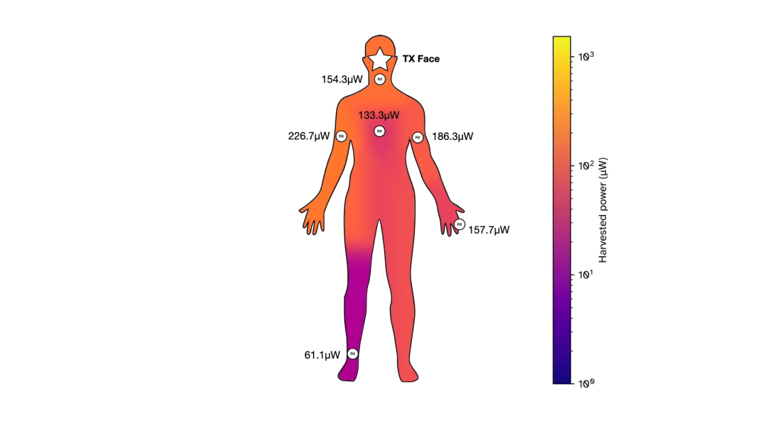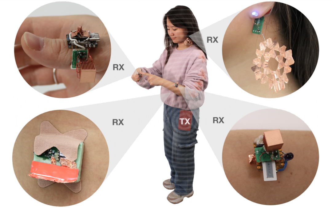 它允许单个穿戴式发射器为多个小型、无电池的穿戴设备提供电力。这些设备可以分布在身体的不同部位,如戒指、耳环、增强现实(AR)眼镜等,它们可以通过人体传导电力,而无需直接接触或者电线连接。