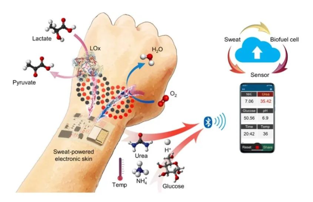 加州理工学院的研究团队开发了一种能够通过生物燃料电池从汗液中收集能量的电子皮肤。不过,虽然这款设备的电量来源确实是“皮肤”,但它却没有完全摆脱电池的束缚。即使它使用的是高效的乳酸生物燃料电池(BFC)。