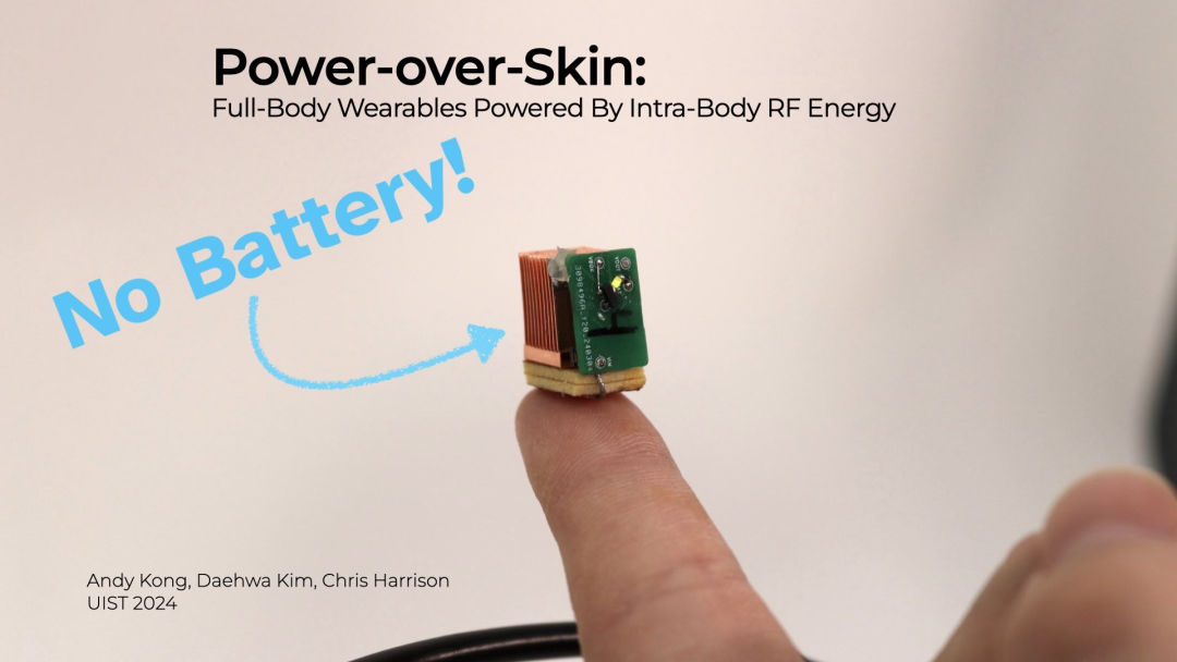 卡内基梅隆大学的 Andy Kong、Daehwa Kim 和 Chris Harrison 开发了一种名为“Power-over-Skin”的技术,它是一种通过人体内部的射频(RF,Radio Frequency)能量来为全身穿戴设备供电的创新方法。