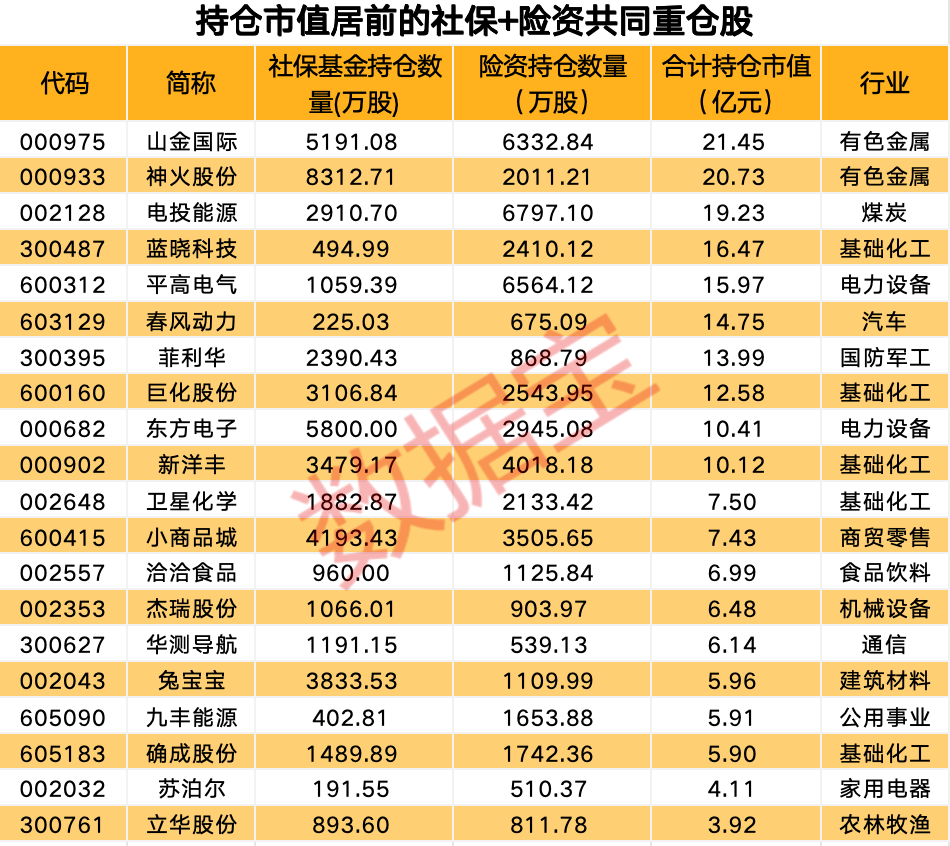 社保基金、险资均为市场共同认可的耐心资本,其投资风格具有明显的相似之处。最新社保基金重仓的124股中,41股获得社保+险资共同重仓,占比近总数的三分之一。