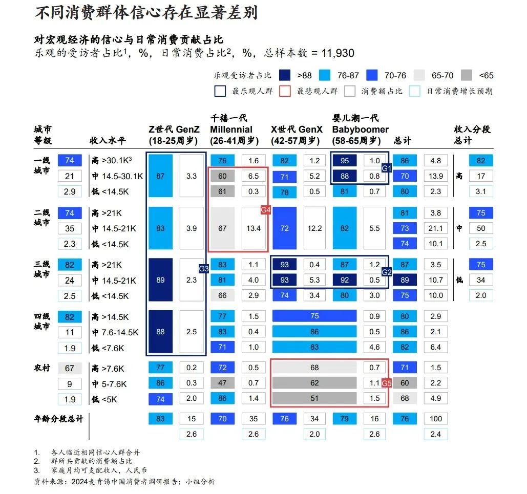 “对于在中国市场寻找机会的人而言,把握上述微妙差别至关重要。......我们有必要在总体指标之外,通过细致观察找到消费者信心较强、呈现正增长的市场领域。”
