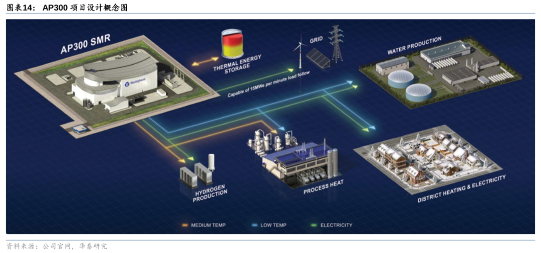 3. 总结而言,我们看好美国数据中心对清洁、稳定电源的需求或加速SMR工程化。美国核能监管委员会(NRC)于2020年批准了首个SMR设计,另有多个SMR设计目标在2025-27年附近取得NRC设计认证,并于2027-2030年前后实现首堆投产。在美国以外,SMR多元化的应用场景(包括电力、供热、船舶)也正推动更多项目在中国、俄罗斯等区域落地。