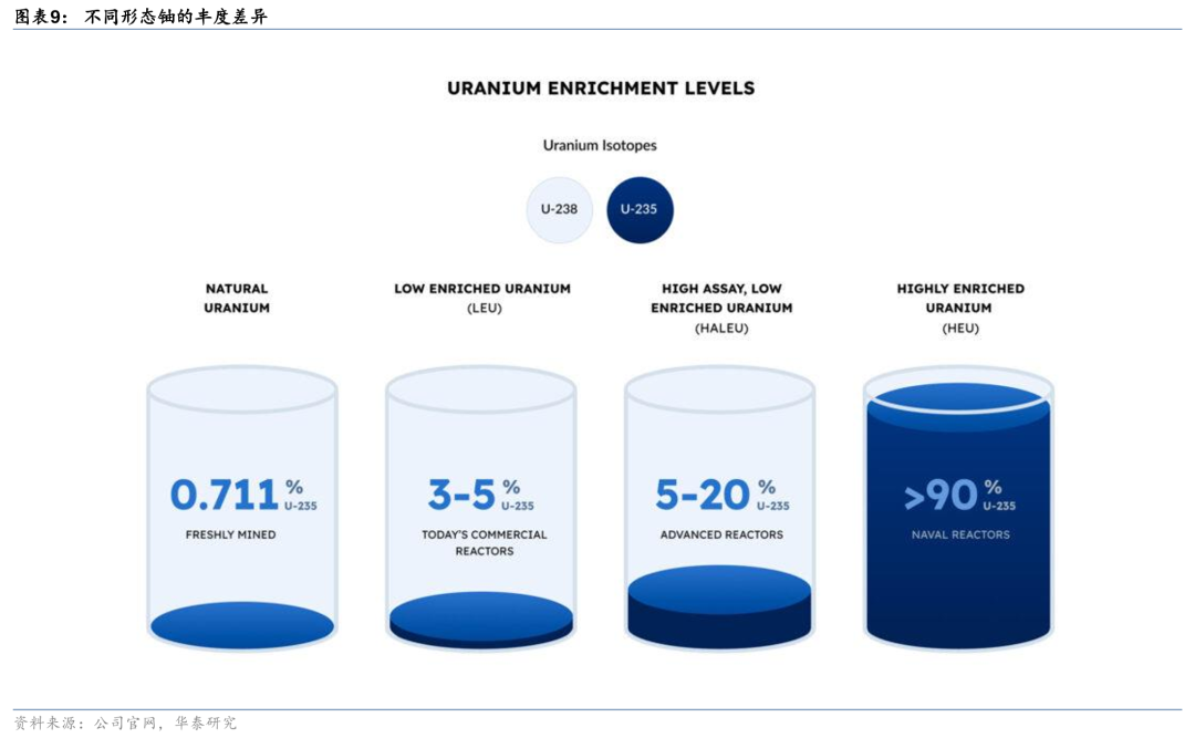 原材料供应风险。小型模块化反应堆虽然可部分共用大型堆的成熟设备和材料供应链,但如HALEU燃料(高浓度低浓缩铀)供应、非铀燃料供应、非水冷却剂供应、四代核反应堆设备等环节的供应链尚在发展早期,若原材料和设备技术发展不及预期,或带来小型核反应堆建设和工程化不及预期风险。