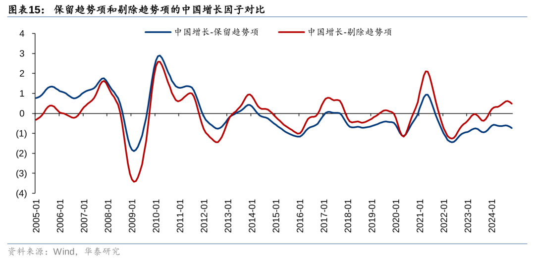 前期报告中的数据预处理步骤主要包括口径统一、季节性调整、HP滤波等。其中HP滤波剔除了指标中的趋势项、只保留周期项,前期报告这么做是考虑到在样本内国内资本市场走势与周期项显著相关。然而,在样本外跟踪的过程中,我们发现近两年国内资本市场开始定价趋势项,剔除趋势项后的宏观因子走势有时候并不符合投资者的“体感”。这说明HP滤波有可能造成了样本内的过拟合。除此之外,周期项和经济周期模型也存在较高的相关性,只保留周期项容易产生和第一层次重合的信号。故本文不再使用HP滤波。