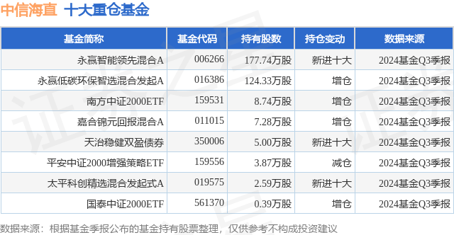 重仓中信海直的公募基金请见下表: