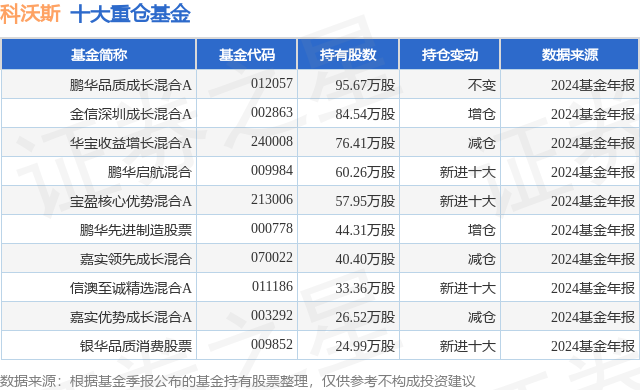 根据2024基金年报公募基金重仓股数据,重仓该股的公募基金共25家,其中持有数量最多的公募基金为鹏华品质成长混合A。鹏华品质成长混合A目前规模为8.36亿元,最新净值0.9141(2月11日),较上一交易日下跌0.04%,近一年上涨12.32%。该公募基金现任基金经理为袁航。袁航在任的基金产品包括:鹏华先进制造股票,管理时间为2014年11月4日至今,期间收益率为199.6%;鹏华策略优选灵活配置混合,管理时间为2015年8月13日至今,期间收益率为94.93%;鹏华品质优选混合A,管理时间为2021年2月9日至今,期间收益率为-15.76%;鹏华鑫远价值一年持有期混合A,管理时间为2021年5月14日至今,期间收益率为5.15%。