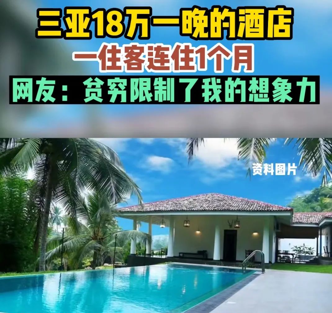 住一晚上动辄六七千元,三亚最贵的皇家套房一晚更是高达18万,更形象点说就是连呼吸都要收费。