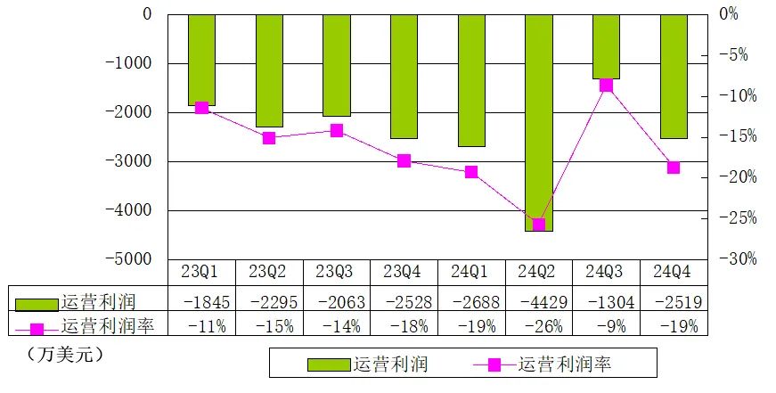 搜狐2024年第四季度运营亏损为2500万美元,与上年同期基本持平。