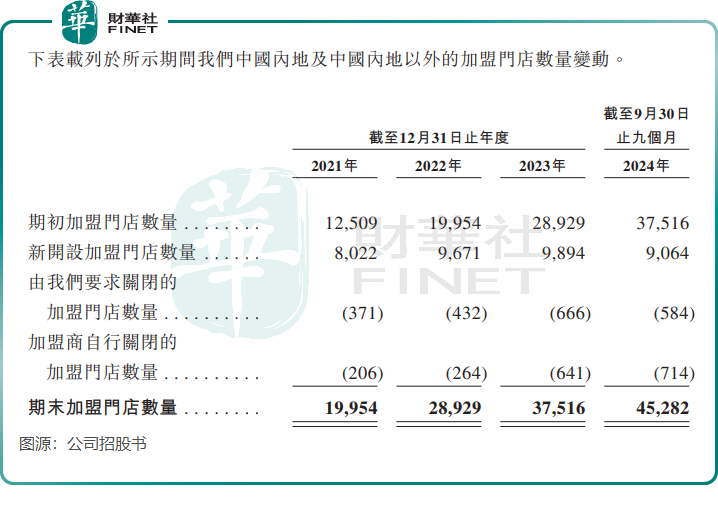 尽管部分加盟店关闭,但更多的加盟门店开设。2024年前三季度,新开设的加盟门店数量超过9000家。