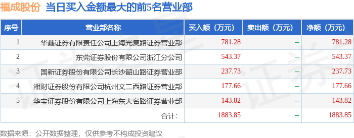 证券之星消息,沪深交易所2025年2月24日公布的交易公开信息显示,福成股份(600965)因有价格涨跌幅限制的日收盘价格涨幅偏离值达到7%的前五只证券登上龙虎榜。此次是近5个交易日内第1次上榜。