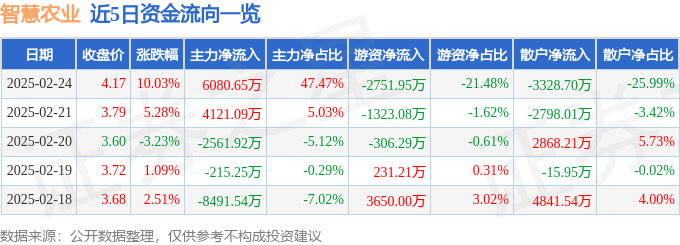 2月24日的资金流向数据方面,主力资金净流入6080.65万元,占总成交额47.47%,游资资金净流出2751.95万元,占总成交额21.48%,散户资金净流出3328.7万元,占总成交额25.99%。