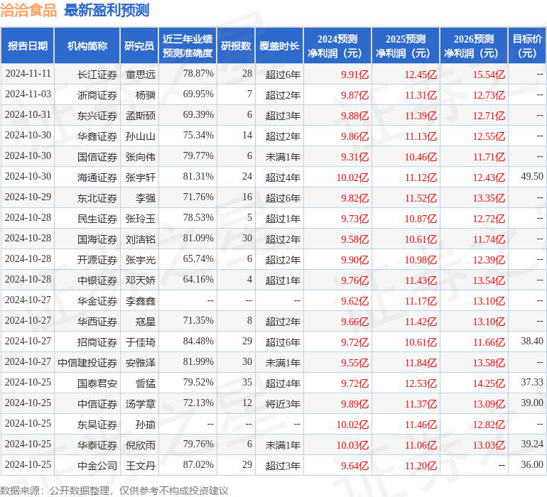 证券之星数据中心根据近三年发布的研报数据计算,中金公司王文丹研究员团队对该股研究较为深入,近三年预测准确度均值高达87.02%,其预测洽洽食品2024年度归属净利润为盈利9.64亿元,根据现价换算的预测PE为14.31。