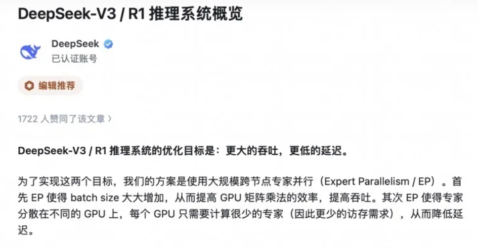 3月1日,DeepSeek于知乎开设官方账号,独家发布《DeepSeek-V3/R1推理系统概览》技术文章,首次公布模型推理系统优化细节,并披露成本利润率关键信息,标志着全球关注的“DeepSeek开源周”正式收官。值得一提的是,文章还率先披露了DeepSeek的成本和利润率等关键信息。“假定GPU租赁成本为2美金/小时,总成本为$87,072/天。……如果所有 tokens全部按照DeepSeek R1的定价计算,理论上一天的总收入为$562,027,成本利润率545%。”