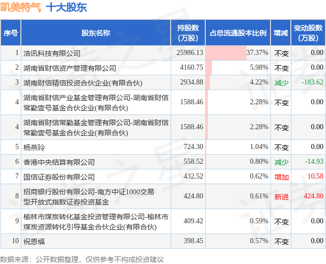 根据凯美特气2024年三季报公布的十大股东详情如下: