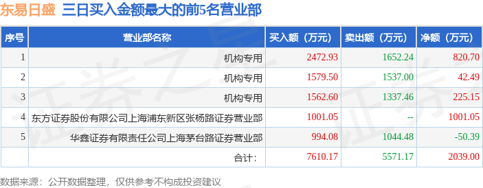 从龙虎榜公布的三日买卖数据来看,机构合计净买入93.62万元。炒股养家等知名游资榜上有名。(知名游资炒股养家一般指华鑫证券有限责任公司上海茅台路证券营业部席位、知名游资炒股养家一般指华鑫证券有限责任公司上海茅台路证券营业部席位,根据市场资料整理,仅供参考)