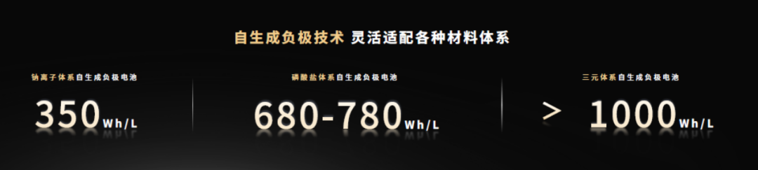 因为整个过程更加接近于本质的原电池结构,“自生成负极电池”在不改变不改变基础电化学反应的基础上,牺牲部分放能和充能速度,能实现能量密度的大幅跃升。根据官方提供的数据,电池体积能量密度可以提升60%,重量能量密度也可以提升50%。